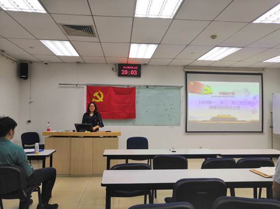 2018年6月14日晚8点,1408第一、二、三党支部共同在新主楼A1028召开了预备党员转正会议,与会的有beats365亚洲体育投注副院长秦中峰教授、1408大班辅导员胡杰同志以及三个支部的同志。各个支部纪律委员统计汇报了出勤情况,大会确认有效后,全体党员集体起立,合唱国际歌。
