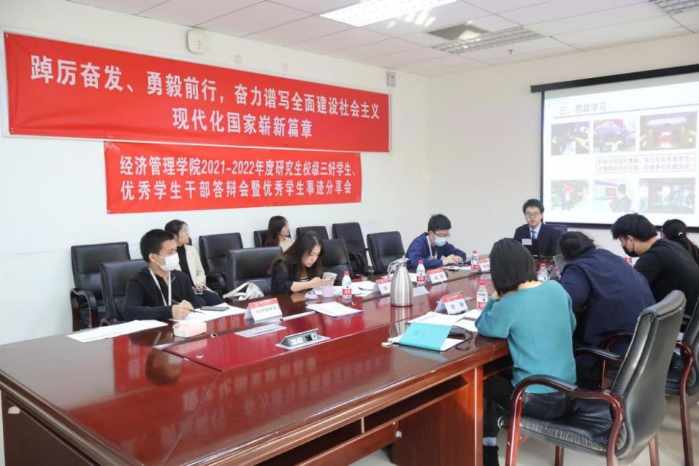 10月19日下午,beats365亚洲体育投注2021-2022年度研究生评优答辩暨优秀学生事迹分享会在新主楼A618、A612教室举行,开展学院本年度校级优秀团员、优秀团干部,校级三好学生、优秀学生干部评选答辩,并进行优秀学生事迹分享。此次评选旨在提高研究生教育质量,表彰先进个人,激励广大研究生奋发向上。答辩会由学生工作办公室衣萌老师、唐鹏飞老师主持。