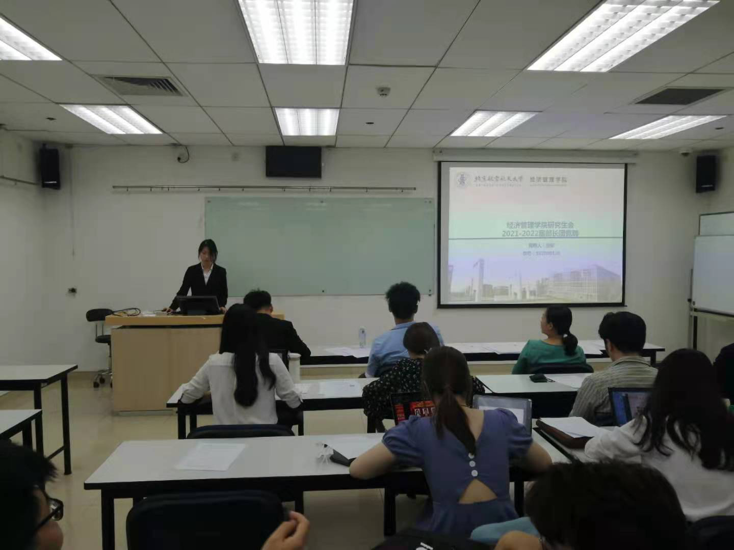 大会最后,衣萌老师进行总结。她首先感谢了上一届研会成员的付出,并希望研会在新一届成员的带领下取得更好的成绩。她强调研会对于个人提升有很大帮助,希望大家珍惜大学生涯,珍惜学生工作机会,为经管学院的发展做出贡献。