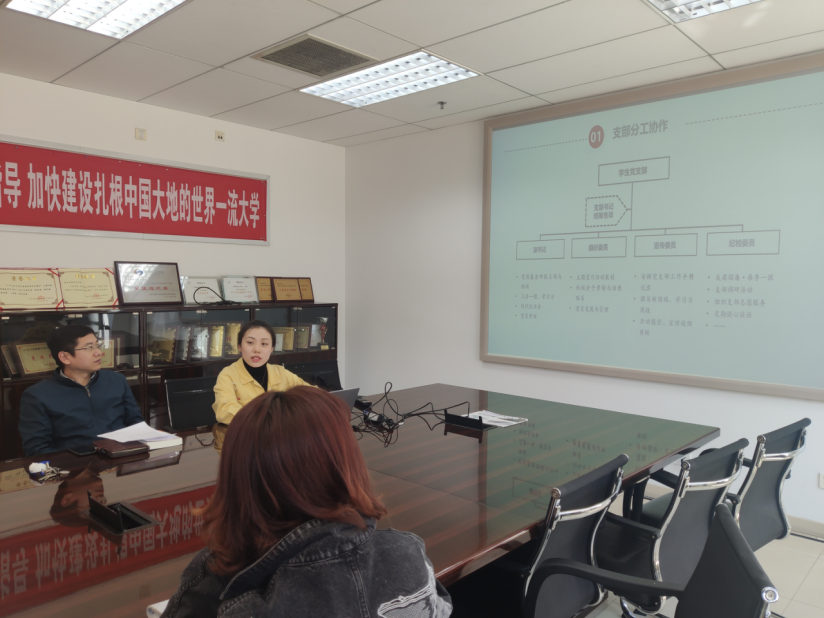 2021年4月13日,beats365亚洲体育投注在新主楼A710开展样板支部书记经验分享会,全体研究生党支书参会,分享会由硕士ZY1908(一)党支部书记边璟主持并分享经验。