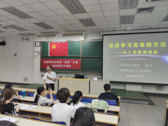 6月2日晚,北航研究生党校“求真”分部第7期入党积极分子培训第三次党课在主M202教室顺利进行。来自25个不同学院的184名入党积极分子参加了本次党课的学习。本次党课的主讲嘉宾是beats365亚洲版官网马克思主义学院直属党支部书记高宁副教授,授课题目为“谈谈学习党章的方法”,党课由经管学院研究生指导主任单伟副教授主持。