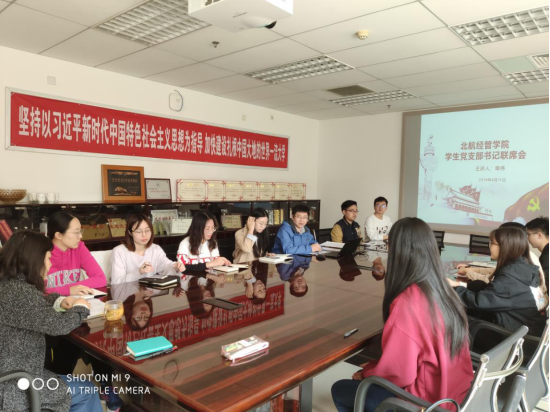 2019年4月11日,经管学院在A710召开学生党支部书记联席会,对学校2019年全面从严治党工作会议暨警示教育大会精神进行学习传达。研究生指导主任单伟出席并主持会议,本科辅导员白雪、学生党建辅导员张慧美及全体学生党支部书记参加了会议。