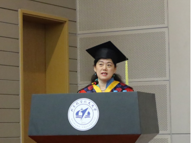 研究生导师代表周宁教授代表全体教师,为全体毕业生们送上了祝福和期许。希望全体毕业生以中国二千五百多年的老子智慧和现代的毛泽东智慧来共勉,在人生的旅程中,持有老子的三宝,严于律己、宽以待人,像毛泽东同志在《纪念白求恩》文中号召的那样:“做一个高尚的人,一个纯粹的人,一个有道德的人,一个脱离了低级趣味的人,一个有益于人民的人。”