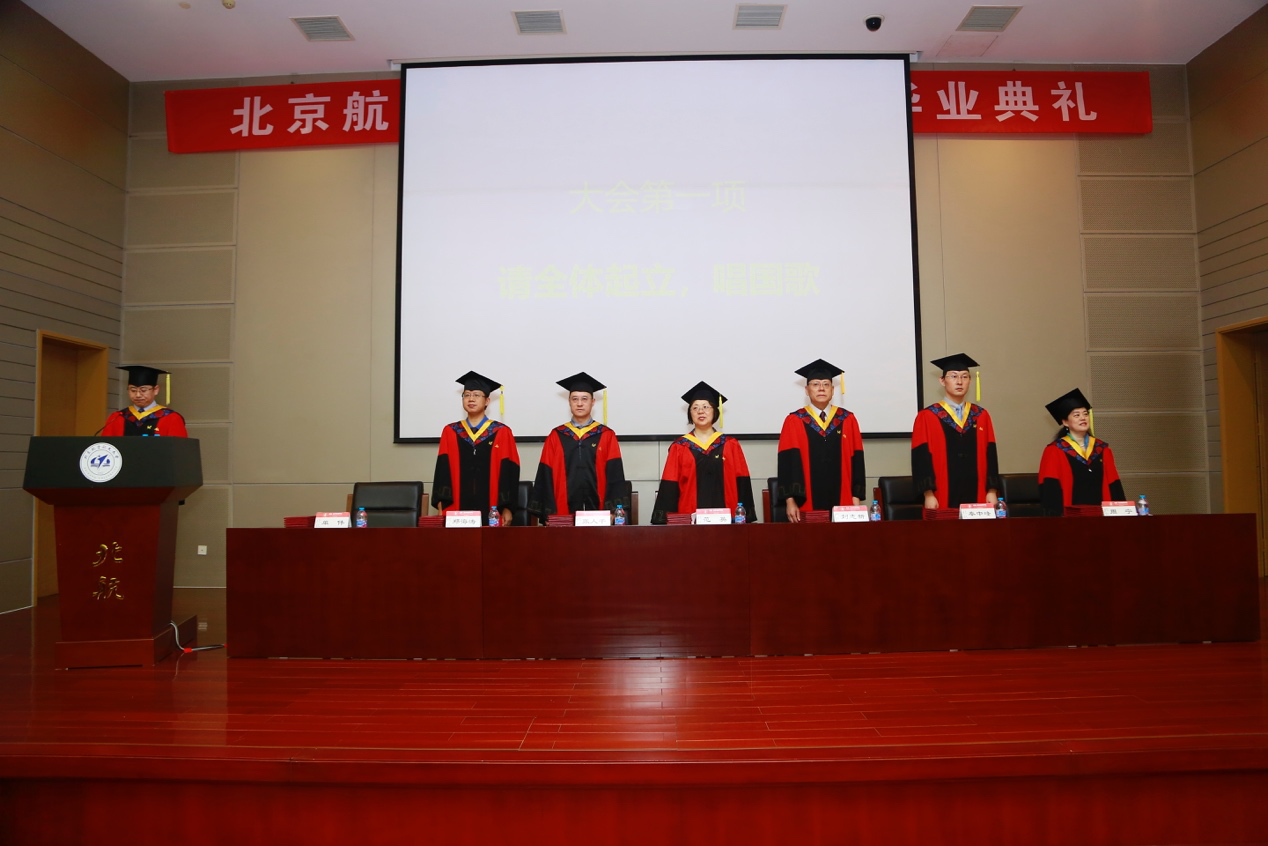 毕业典礼在庄严的国歌声中正式开始。党委书记刘志新教授宣读了2018年夏季北京市优秀毕业生获奖名单,副院长秦中峰教授宣读了2018年夏季北航优秀毕业生获奖名单,副院长郑海涛副教授宣读了2018年北航优秀硕士学位论文获得者名单,副院长张人千教授宣读了2018年北航优秀硕士学位论文指导教师名单。与会领导和嘉宾为获奖者颁发了荣誉证书。