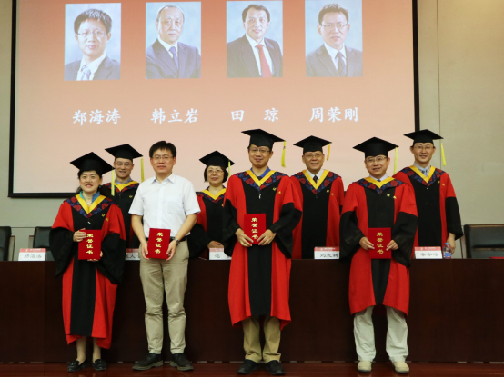 在随后举行的学位授予仪式上,与会领导和学院学位评定委员会委员为毕业生们一一拨苏正冠、颁授学位证书并合影留念。最后,毕业生们面带微笑、满怀激动的心情进行了合影留念。