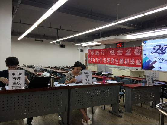 经管学院2018届春季毕业生离校工作于2018年7月4日全面展开。经管学院研究生工作办公室、职业发展中心及MBA、研究生教务等协同合作,保证200余名毕业生们顺利完成毕业手续。