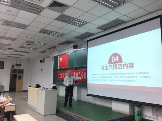 接下来由朱稼兴老师为积极分子们讲授党课。在聚焦党的十九大这个部分,朱老师对习近平总书记十九大报告解读,深入学习贯彻党的十九大精神进行了全面深刻剖析。不仅介绍了大会的背景、任务、题目、主题、影响意义以及内容进行了全面解读,还加入了作为一名老党员的看法。老党员对十九大的生动而深刻的感悟也感染了每一位积极分子。