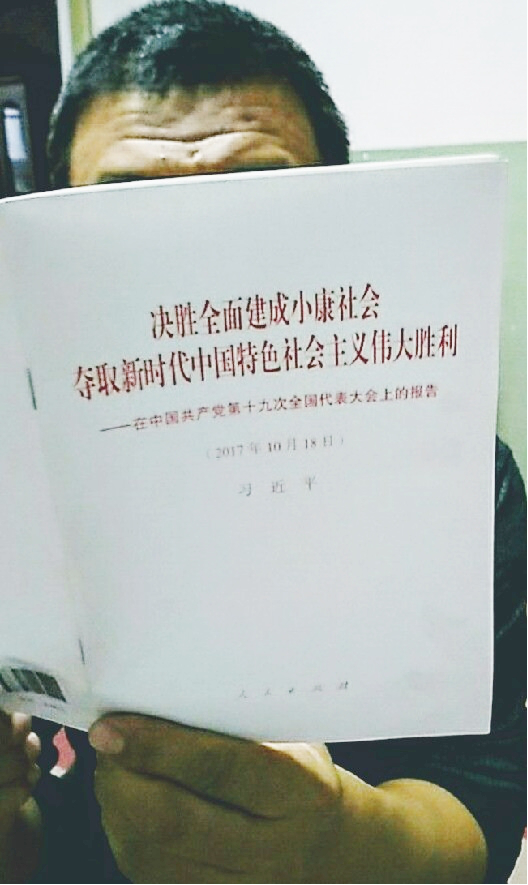 图4 王钰超同志与家人一起阅读十九大报告原文