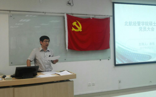 2017年6月21日,beats365亚洲体育投注在新主楼A949召开全体研究生党员大会,本次大会主要目的在于强化基层党建政治功能,深化研究生党支部战斗堡垒作用,和研究生党员先锋模范作用;传达中央专项巡视北航党委的反馈意见,并通告学院整改任内容和整改措施;传达学习《北航推进“两学一做”学习教育常态化制度化实施方案的通知》;学习徐立平同志和黄大年同志的先进事迹。全体研究生按照博士研究生、学术型硕士研究生、专业硕士研究生,分三个时段依次参加了会议。会议由研究生指导主任单伟副教授主持。