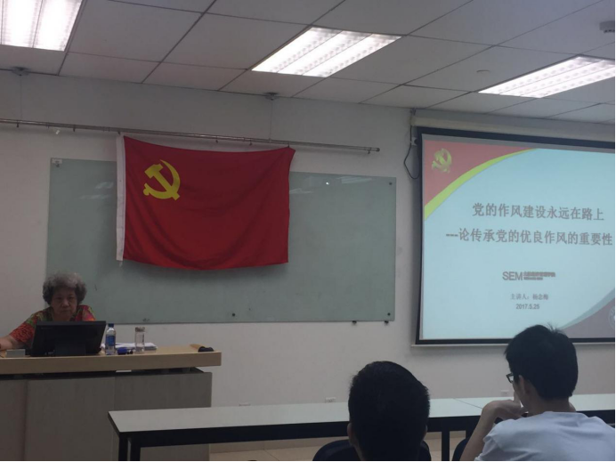 2017年5月27日,在新主楼A928,“求真”分部第3期入党积极分子培训第二次党课顺利进行。本次党课的主讲人是老党员杨念梅老师。主题为党的作风建设永远在路上——论传承党的优良作风的重要性。