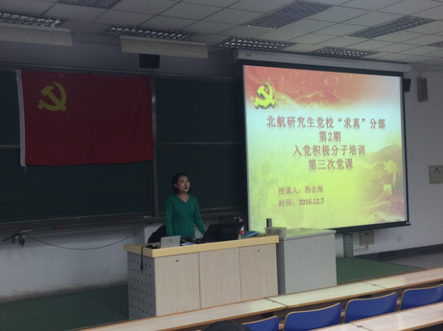 2016年12月7日,在主M楼101,“求真”分部第2期入党积极分子培训进行了第三次党课。本次党课的主讲人是老党员杨念梅老师。主题为党的作风建设永远在路上——论传承党的优良作风的重要性。课前经管学院研究生办公室主任衣萌老师对入党积极分子的第四次培训做了初步介绍和部署。