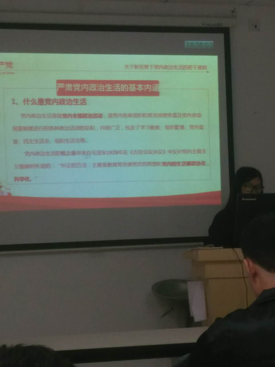 支部全体成员在此次专题学习会议中主要对若干准则基础知识、若干准则制定背景、若干准则的提纲三方面的内容进行了详细的学习。最新版党内政治生活的若干准则的制定主要是基于完善“四个全面”战略布局、深化全面从严治党以及解决党内存在突出矛盾和问题三个方面的需要。若干准则的核心内容主要包括:一、严肃党内政治生活的基本内涵、落实党支部组织生活制度、加强党员管理服务以及认真做好发展党员工作四个方面的内容。
