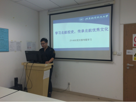 2016年10月28日ZY14082党支部在A1039举办党支部集中学习活动,本次的主题是学习北航校史,传承北航优秀文化。本次活动由于文东同学主讲,全体党支部成员共同讨论学习,本次活动圆满成功。