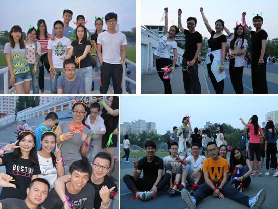 本次活动主题性强,范围广,趣味性多。每组队伍均可获得彩带、荧光涂料、荧光发饰及荧光环进行本队的主题装饰,五颜六色的荧光与每个人脸上灿烂的青春笑容交相辉映;活动起点设在操场,所有的队伍一同从起跑线出发,绕操场跑一圈后,依次跑到校园内的五个站点进行闯关。五个站点分别设在篮球场、新主楼大台阶前、主楼前、图书馆前及绿园。每个关卡代表一种颜色,队伍通过游戏关卡可获得相应颜色的荧光棒一枚。集齐五种颜色的荧光棒,以最快的速度跑到终点(唯实园)即为获胜;每个站点的游戏设置同样充满趣味与创意:旋转投篮、对踢毽子、嘴传荧光棒、叠罗汉及坐爆气球,每个游戏都需要团队成员的紧密配合,意在提升团队的凝聚力以及同学们之间的友谊。活动中,每个队伍团结一致,积极配合,努力攻克一个个关卡,并不抛弃不放弃,一同冲向终点。夜幕降临的校园,是大家荧动的脚步,欢乐的笑语。