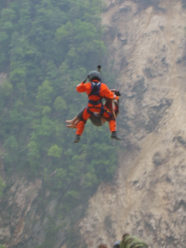 我们一行四辆车15个人开始向灾区开拔。从同行人口中我们得知什邡市红白镇和北川一样是在两个山之间的峡谷中。地震让很多的大山都整座的垮塌下来,给这些坐落在大山间的小镇带来了毁灭性的破坏。震前这里是非常有名的风景胜地,每年要接待不少的境内外游客,现在那里已经变的满目苍凉。