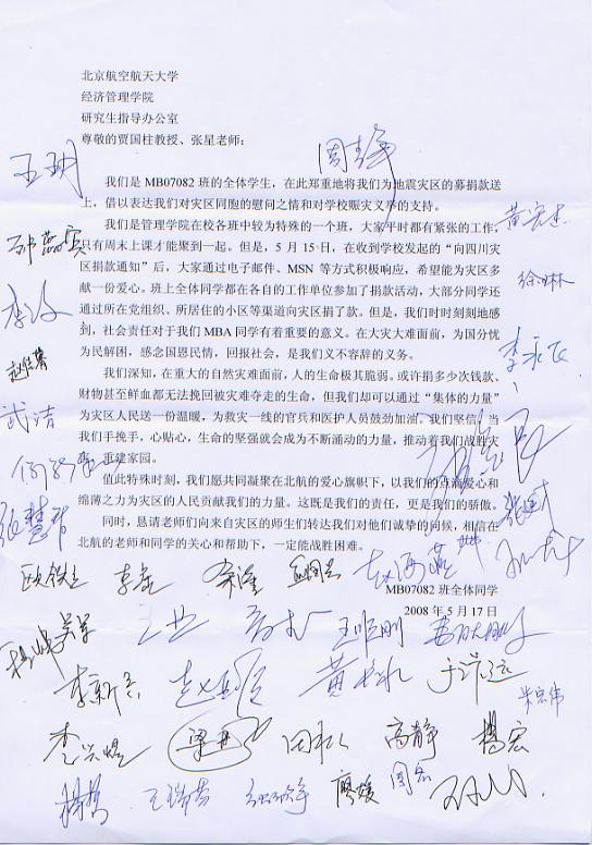 当地震横扫我们川北大地时,全国人民都在关注。我们北航MBA2007级学生王业同学在5月21日赶赴了四川参加救援行动,于5月24日回到北京。回来后给我们讲述了他的亲身经历,原本想对他的稿件删节一部分,但是字里行间流露出的切切真情让我无法删改,特此保留全文。并在此代表我们所有北航MBA同学向他致敬。