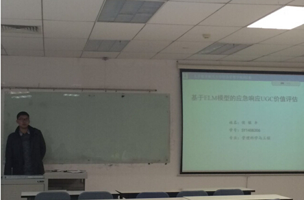 第一位宣讲人是侯银丰,题目是《基于EML模型的灾害应急响应UGC的价值评估》。第二位宣讲人是杨丽,题目是《基于马尔科夫链的停车寻位模型与仿真》。第三位是张垒,题目《基于滑动平均法的大规模定制模式下供应链牛鞭效应研究》。论文作者的精彩讲解赢得了在场同学的热烈掌声。大家纷纷表示通过此次学术宣讲活动,收获了很多自己专业课以外的很多东西,扩大了自己的视野,改变了自己对一些问题的常规思考方式。同学们表示会继续保持一颗不断求索的心和一份持之以恒的努力,能够在接下来的学术交流活动中有所收获、有所成长。