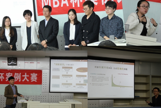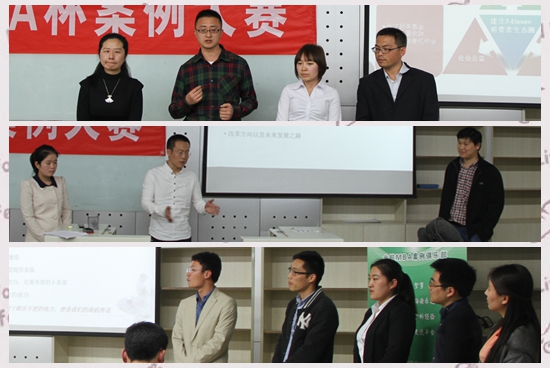 围绕《7-Eleven在台湾:将便利商店扩展至新市场环境》以及《阿里巴巴之淘宝盈利模式》这两个案例,各组同学分别进行作品展示。其中,给我留下深刻印象的有第三组“团团圆圆队”,他们分析了淘宝的长尾市场,并以一个新颖的视角来分析了商业情商与淘宝盈利模式的关系,令我也更加期待淘宝的新型商业模式。压轴出场的第七组“精英队”,给人眼前一亮的是他们整齐划一的黑色套装,展现了职业经理人的风采,令人为之惊艳的是他们对7-11便利店开拓新市场的案例分析,细致入微,条理清晰,连评委老师都不禁连连点赞,拿下本场冠军已是情理之中。其余队伍也是各有所长,比赛高潮迭起,精彩纷呈。但是基于时间有限,每个组只有十分钟的分析案例时间,当第九组结束的时候,我还觉得意犹未尽,思维的碰撞还在我的脑中久久不能停歇。