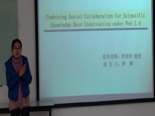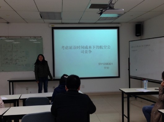 宣讲会的第一位宣讲人是企管专业的邓清清,她的论文题目是《社会交换行为的类型研究》,文章区别于前人以报酬为导向的研究,提出从人的社会行为本身出发来研究社会交换行为,通过总结和完善前人的量表,设计出适应中国情境的问卷,通过对某高校的571位本科生及研究生的问卷调查,运用高阶验证性因子分析,得到社会交换行为的三种类型:利他型、利己型、合作型。第二位宣讲人是交通管理专业的罗婷,她的论文题目是《考虑延误时间成本下的航空公司竞争》,文章通过对双寡头市场的竞争分析拓展到对n家航空公司的分析,并最终建模得到各种可能因素对航空公司运营成本的影响,这对于实际运用十分参考价值。最后是由薛娜带来一篇题为《Combining Social Collaboration for Scientific Knowledge Base Construction under Web 2.0》的英文论文报告,文章提出了一个新颖的方法即基于领域本体的知识库建设,将在线合作方式与领域本体建设相结合,最终,这项研究提供了一个协作的方式来构建领域本体的基础,这对于要求集体智慧和专业智慧的组织在解决问题和做决策方面有深远意义。