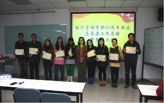 2012年11月26日晚20:00,经管学院所有研一同学在新主楼A928召开了研一大班会暨校庆志愿者表彰大会,SY12082班集体也应邀到场参会,认识全体同学,团结自身建设,感悟过往成果,开启新的起航。