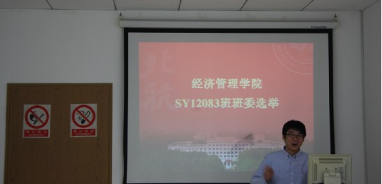 伴随着研究生生涯第一个小假期的结束,经管学院SY12083班19名同学于10月9日在新主楼A949教室举行了班委的竞选。经过一个多月的接触,大家彼此有了一定的了解,整个竞选活动在十分融洽和欢乐的气氛中有条不紊地进行。