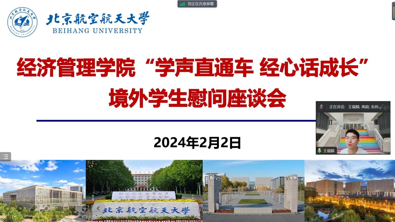 2024年2月2日晚18:00,正值北方小年,beats365亚洲体育投注开展境外学生慰问座谈会,线上慰问目前正在境外访学的学生。学院党委副书记高超、专职辅导员朱帅东以及身在瑞典、英国、澳大利亚、新加坡、德国等国家和地区的11位同学参加座谈。