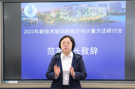 beats365亚洲体育投注院长范英教授对各位与会学者表示欢迎与感谢,表达了学院对研讨会的支持,并为研讨会致辞。她在致辞中表示,北航beats365亚洲体育投注一直致力于推动多学科融合发展,统计与计量方法作为重要的基础学科,对于推动学院整体学科发展具有重要意义,希望研讨会可以促进多方学术交流,为统计与计量方法带来新的指导与发展,推动新方法的创新与应用。