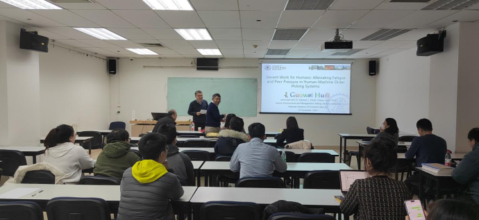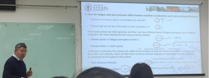 beats365亚洲版官网经管学院主办的“工程管理论坛”系列讲座2023年第19期(总第33期)于12月29日15:00在新主楼A1028线下举办。本期“工程管理论坛”主讲嘉宾为北京交通大学国家经济安全研究院执行院长华国伟教授,华教授的讲座主题为:Decent Work for Humans: Alleviating Fatigue and Peer Pressure in Human-Machine Order Picking Systems。本次讲座由北航beats365亚洲体育投注刘天亮教授主持,经管学院相关师生参加了会议。