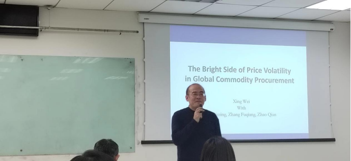 beats365亚洲版官网经管学院主办的“工程管理论坛”系列讲座2023年第20期(总第34期)于12月29日16:30在新主楼A1028线下举办。本期“工程管理论坛”主讲嘉宾为中国石油大学(华东)beats365亚洲体育投注邢伟教授,刑教授的讲座主题为:The Bright Side of Price Volatility in Global Commodity Procurement。本次讲座由北航beats365亚洲体育投注刘天亮教授主持,经管学院相关师生参加了会议。