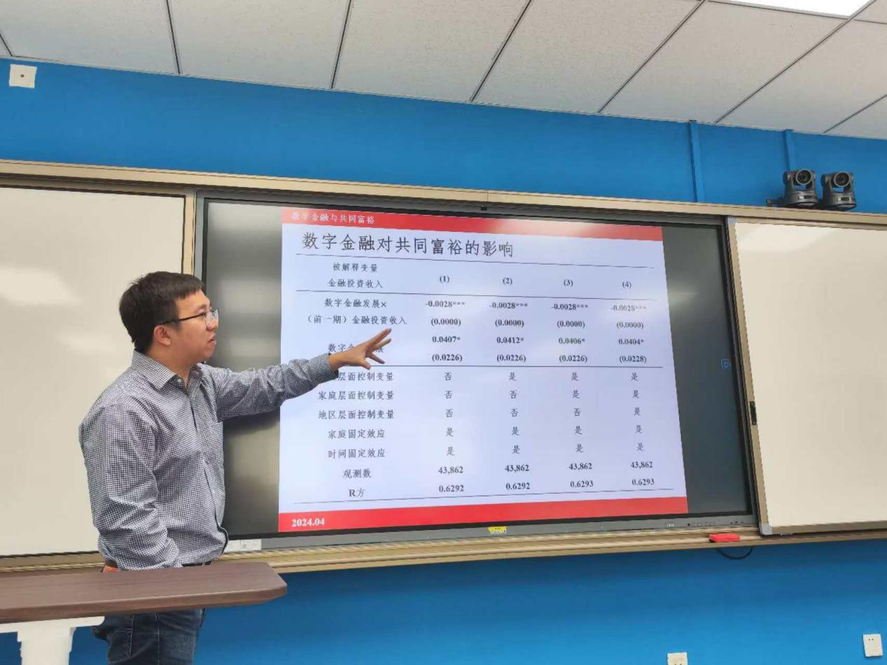 张勋教授在本期融实论坛中,以《数字金融与共同富裕》为题作学术报告。张勋教授以共同富裕为切入点,深入探讨了数字金融对居民财产性收入的影响。他从供给侧和需求侧两个角度详细分析了其影响机制。在理论层面,教授指出,从数字金融、财产性收入以及金融投资机会的角度来看,这一研究具有重要意义。随着社会经济的发展,财产性收入在未来将占据越发重要的地位。同时,社会的不均等在很大程度上由资本市场驱动,这使得关注金融投资机会的均等化成为必要。在数字金融的作用方面,张教授强调其对居民收入分配有着不可忽视的影响。例如余额宝这类数字金融产品,能让老百姓的钱投入到银行间市场,降低了居民的投资成本,实现了从银行利润向居民的转移,进而提高了居民收入以及整体的国民收入。基于严谨的理论分析,张勋教授通过扎实的实证研究结果,从多个方面阐述了数字金融在促进家庭金融投资、提升居民财产性收入中的影响。从利率市场化、投资便利性、金融服务门槛、金融知识要求到风险承担水平等,数字金融都在不同程度上发挥着作用。例如,数字金融降低了家庭的金融知识要求,促进了家庭金融投资的需求侧机制;同时,提升了金融投资便利性以及降低了金融服务门槛,推动了供给侧机制。此外,教授还从数字金融的覆盖区域和覆盖群体的角度探讨了其对于家庭投资机会均等化的影响。
