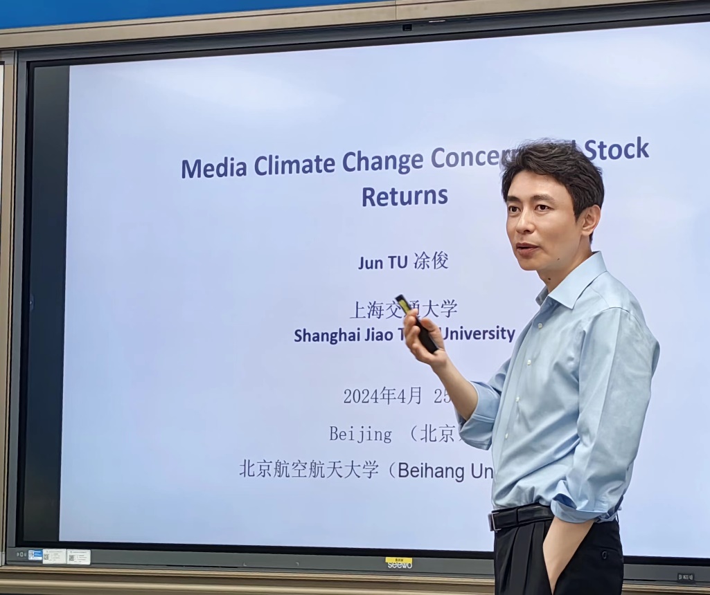 在本期融实论坛上,涂俊教授带来了题目为“Media Climate Change Concern Stock Returns”的学术报告。凃教授在报告中分享了一个他们的最新研究成果。媒体对气候变化的关注能否预测股市的总收益?本研究提出了一种新的综合媒体气候变化关注指数(CMCCC),该指数来源于不同媒体渠道的意外气候变化报道。研究结果表明了媒体气候变化关注对股票市场总收益的可预测性,CMCCC的意外变化可以显著负向预测随后长达12个月的市场回报,研究还阐明了CMCCC的预测能力主要源于现金流渠道,这是由于投资者对于气候变化关注引发的冲击反应不足。