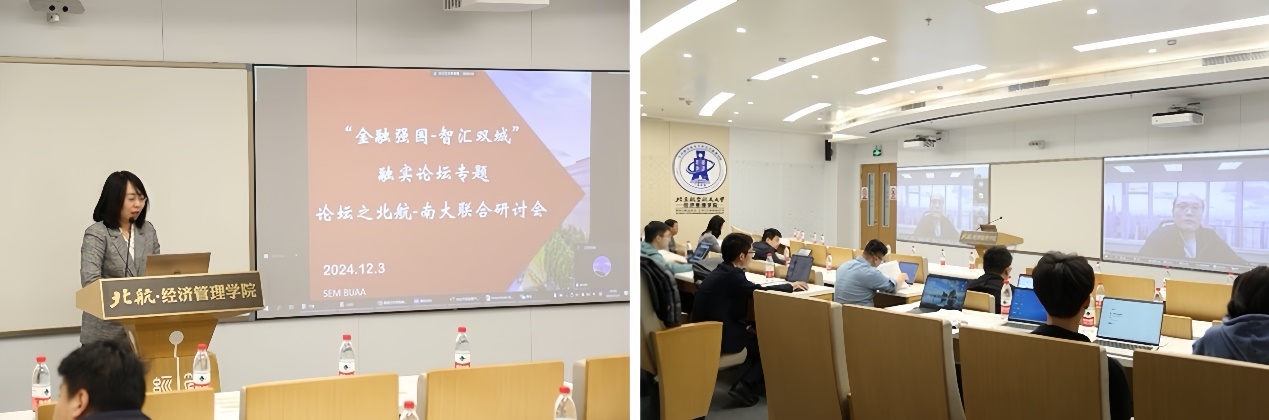 beats365亚洲体育投注金融系与南京大学工程管理学院金融科技与工程系联合举办了“金融强国·智汇双城”主题论坛暨北航-南大联合学术论坛与金融人才培养交流会于2024年12月3日下午在beats365亚洲版官网新主楼A618,通过线下线上协同方式举行。该论坛由beats365亚洲体育投注金融系主任部慧副教授发起,经北航经管学院主管副院长和南京大学工程管理学院院长的批准,由北航经管金融系的石丽娜老师和南京大学工程管理学院金融科技与工程系李昊骅共同组织。