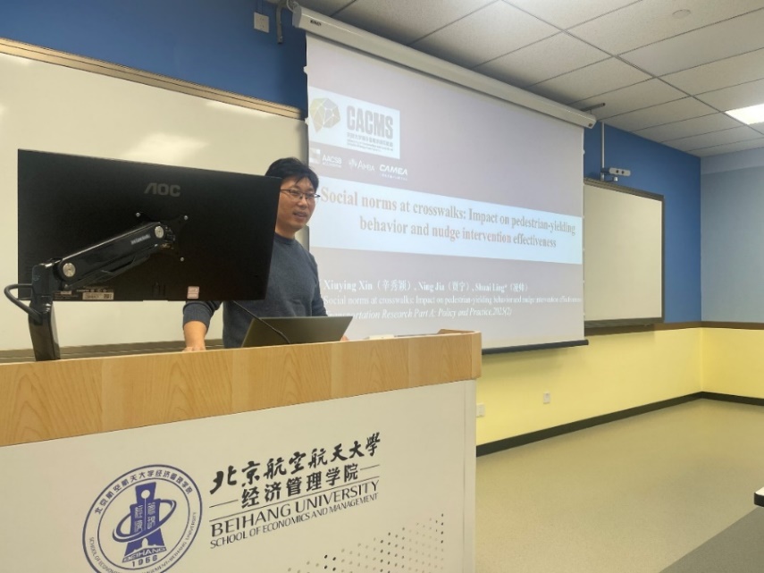 beats365亚洲体育投注主办的“工程管理论坛”系列讲座2024年第18期(总第52期)于12月27日17:00在新主楼A1028线下举办。本期“工程管理论坛”的主讲嘉宾为天津大学城市交通管理方向副教授,凌教授的讲座主题为:“Social norms at crosswalks: Impact on pedestrian-yielding behavior and nudge intervention effectiveness”。本次讲座由北航beats365亚洲体育投注田琼教授主持,经管学院师生参加了讲座。