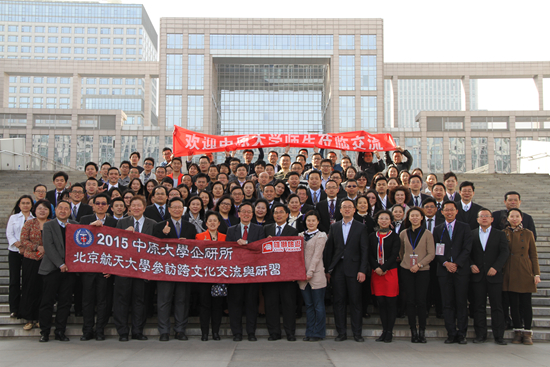 柏主任首先对远道而来的宝岛师生表达热烈欢迎之意,并预祝对方享受本次短期游学之行。紧接着我院周宁副院长致欢迎辞,她回忆我院与中原大学商学院自2011年签约至今,双方每年都有愉悦的交流合作。本次为期三天的交流访问,我院在课程讲座、企业参观等方面都作出精心安排,即两院MBA师生共同参与课堂与活动交流,期望进一步促进双方关系的良好发展。中原大学商学院刘立伦院长致辞感谢我院的热情接待,并介绍中原大学商学院及企业管理系的发展历程,以及与北航经管学院合作交流情况,希望两院情谊长存。欢迎仪式结束后,两院领导和与会师生到新主楼前合影留念。