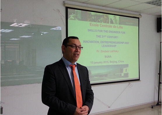 Zoubier Lafhaj 教授首先介绍了法国卓越工程师的特点,对法国中央理工大学卓越工程师教育、硕士生教育及博士生三者结合的教育体系进行了详细说明,进而对21世纪工程师应具备的素质和能力进行了阐述。Lafhaj 教授还对目前进行的科学研究进行了分享。