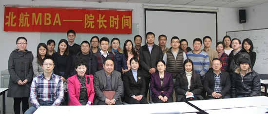 “院长时间”是北航MBA的传统沟通机制,每学期举办一次,旨在过放松、直观的形式,让MBA学生就学习、生活、职业发展等各个方面和院长面对面地交流,同时也帮助MBA同学了解学院最新动态。2015年1月11日晚,本学期“院长时间”座谈会在新主楼A座928教室拉开帷幕。北航经管学院院长王惠文教授、副院长周宁教授亲临现场与同学们亲切交流。MBA教育中心主任柏满迎教授、副主任李亚帅博士、主任助理陈喆博士以及教务主管李慧老师陪同出席本次活动。