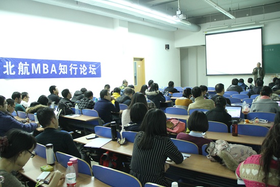 2014年12月28日晚,北航MBA知行论坛在新主楼B座118教室再次开讲。本次活动邀请到中国游戏行业初期颇负盛名的先驱人物边晓春先生,边先生丰富的履历吸引了众多MBA学生和校友到场聆听,“创业时机的挑选、怎样能做得出彩”也是大家最关注的命题。边先生结合个人多年从业经验及创业史,将自己奋斗历程中重要的转折点,以“过来人”的身份向大家娓娓道来。