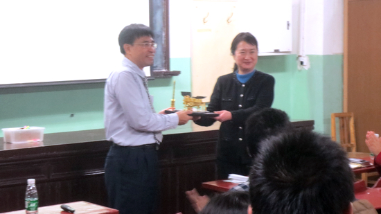 讲座结束后,王惠文院长讲话并代表beats365亚洲体育投注向张伟豪老师赠送“嫦娥三号”飞船模型。最后,在热烈的掌声中,本次beats365亚洲体育投注高端论坛讲座圆满结束。