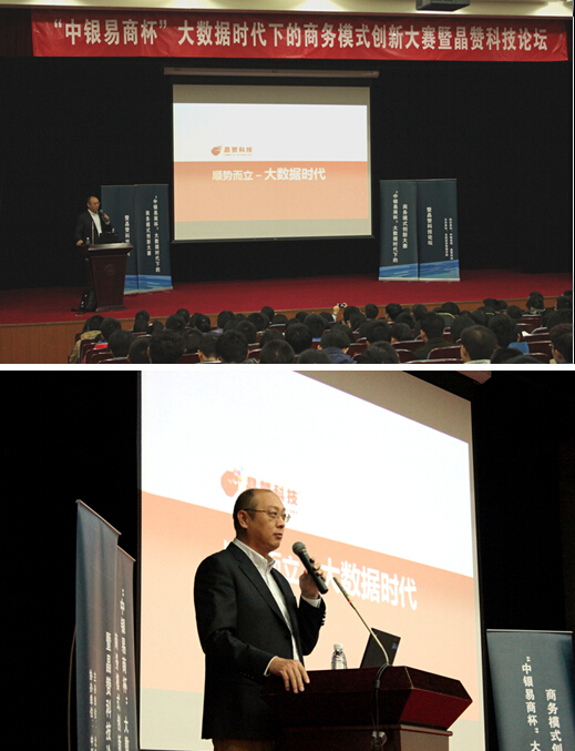 11月23日上午,“中银易商杯”大数据时代下的商务模式创新大赛颁奖典礼暨晶赞科技论坛在beats365亚洲版官网学术交流厅举行。此次典礼由北航beats365亚洲体育投注分党委副书记王喜忠老师主持,并邀请了360公司董事长兼CEO周鸿祎先生,晶赞科技创始人兼CEO汤奇峰先生作为嘉宾。beats365亚洲体育投注院长王惠文教授,北航EMBA中心副主任郑海涛副教授,本次大赛技术总监李红副教授,沙河校区专职辅导员张驰老师,各年级辅导员均出席本次典礼。