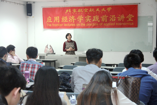 2014年10月20日,我院邀请到来自中国建设银行总行金融市场部郑葵方老师为我院学生作题为《大国经济和金融的博弈》的报告。我院郑海涛教授担任主持,2014级研究生和博士出席了本次讲座。讲座一开始,郑海涛对郑葵方教授作了简要介绍——郑葵方老师的研究方向主要为对各个大国金融体系进行深入研究。