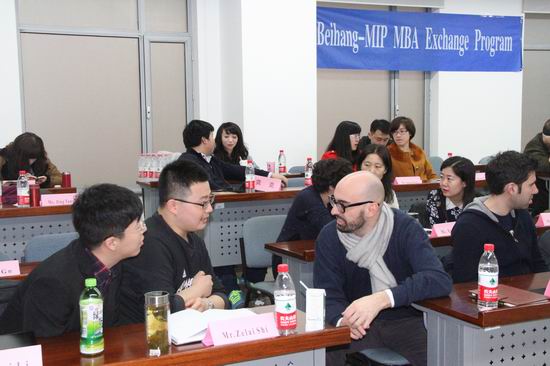 2014年3月3日,尽管北京持续多日的雾霾天气依旧未放晴,但却丝毫不影响北航MBA中心欢迎来自意大利米兰交换生的热情。此次交换学生的北京交流访学之行,由北航MBA中心MB13081班的全体学生共同参与。上午9:30 MB13081班李伟同学作为欢迎仪式的主持人,用充满诚挚的致辞对远道而来的意大利交换学生表达北航MBA中心对他们真切的欢迎。