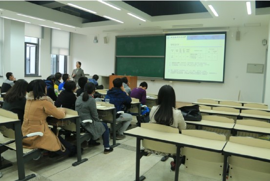第七八节课,杨梅英老师工商专业学科讲座,与贾国柱老师管科专业学科讲座分别在J3-306、J3-405展开。晚上九十节课,韩立岩老师金融专业学科讲座也在J5-104拉开了序幕。讲座中,老师们不但就各学科展开介绍,而且结合我校、我院的特点,在学科的应用、前景等方面也进行了深入解说。