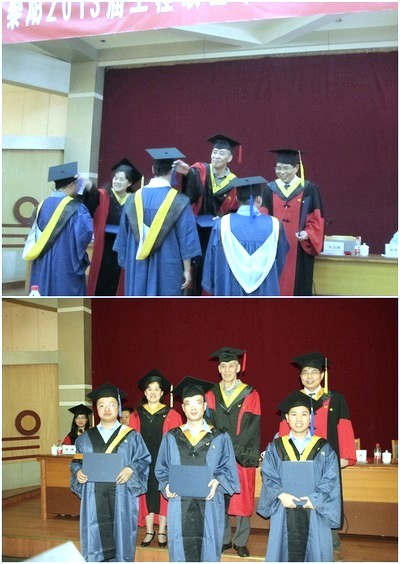 北航经管学院学位评定分委员会委员、北航经管学院副院长方卫国教授宣读中航工业黎阳公司2013届获得硕士学位研究生名单。在欢快的乐曲声中,身着学位盛装的毕业生依次走上主席台,由原航空工业总公司老领导袁立本与周宁副院长、方卫国副院长为同学们拨苏正冠、颁授学位证书。