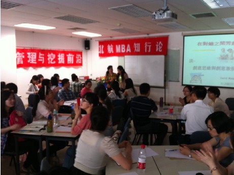 2013年5月21日,资深培训顾问王亚兰女士在新主楼A1048为北航学生带来了一场“创意思维与创意激发技巧”的主题讲座。出席本次讲座的嘉宾有经管学院周宁副院长和经管学院秦中峰副教授。