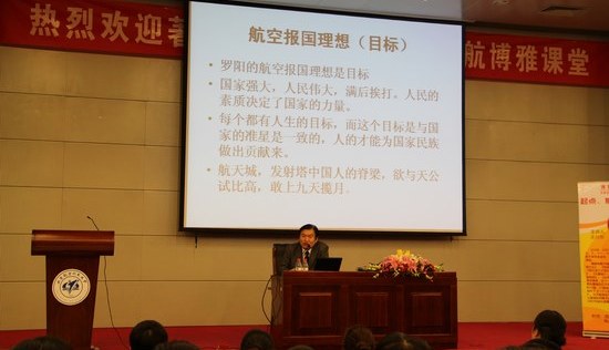 王兴东老师以自己职业为引展开讲述,首先通过一个短片启迪大家在进入大学这一新的起点上,要怀着一种居安思危的精神,去面对自己充满未知与险阻的未来。其次以自身经历为例,就如何能够实现人生目标问题,阐释给同学们“成于专,毁于杂”的道理。希望大家能够像出膛的子弹一样,找准自己的靶子,然后奔着自己靶子前进,打出10分的好成绩。最后,王兴东老师谈到,每个人都要走向自己的终点,而你的终点就取决于你现实的目标,所以他鼓励大家于现在努力提高自身素质,居安思危,努力学习自身专业知识,学习罗阳精神,学习雷锋精神,努力实现航空报国,领悟民族精神,保护民族文化,把握民族未来的命运。