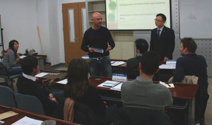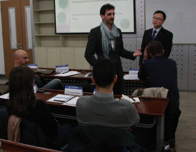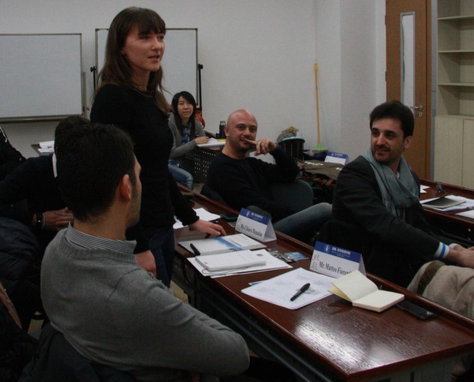 2013年3月11日,来自意大利米兰理工大学MIP管理学院的7名MBA交换生来到北航经管学院,开始为期一周的学习交流活动。上午9:00,北航MBA教育中心在A618为MIP的交换生举行了简短的欢迎仪式。欢迎仪式由我校12级MBA学生吴迪主持,经管学院副院长周宁教授致欢迎辞,学院外事助理郝金星博士介绍了北航及经管学院的情况,MBA教育中心副主任秦中峰副教授介绍了北航MBA项目的基本情况。之后,MIP交换生分别做了自我介绍,幽默的语言引来现场阵阵笑声。北航MB12081班的全体同学参加了欢迎活动。