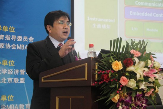 论坛接着进入主题演讲阶段。北航beats365亚洲体育投注博士生导师任若恩教授用大量翔实的资料和数据,对当前经济形势和对策进行了深入透彻的分析,深刻地阐述了当前中国宏观经济的现状,并对2013年中国经济发展进行了独到的预期判断;北航MBA教育综合改革领导小组组长、北航beats365亚洲体育投注院长助理于颖教授向参会嘉宾介绍了北航MBA教育综合改革思路,并对招生工作改革、培养方案修订、案例开发和案例教学推广、学位论文改革四个方面的具体教改实施进行的详尽介绍,并与与会嘉宾分享了北航在案例开发方面的丰硕成果。此外,北京研华科技公司蔡奇男先生、北京中天大业房地产经纪有限公司总经理邓中文先生等企业高层人士先后从各自行业进行主题演讲,既有对党的路线、方针、政策的深度解读,又有对社会经济形势走势的独到见解,同时结合实际,就如何更好地开展MBA教育工作提出了各自的观点和建议。