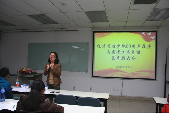 2012年10月27日我校迎来六十华诞,beats365亚洲体育投注先后承办“使命与发展”人才发展高端论坛、校友接待等工作。学院104名志愿者以高涨的热情、高度的责任感、高效率的运作、高水平的服务,为六十年校庆活动提供礼仪接待、现场指引等各方面的服务。为了表彰先进,树立典型,激励进取,营造学院学生热心志愿服务的良好环境,2012年11月26日beats365亚洲体育投注在新主楼A928隆重举行60周年校庆志愿者工作总结及表彰大会,出席会议的有学院研究生指导主任牟晖老师、研究生工作办公室主任衣萌老师、2012级研究生辅导员王腾飞以及参加60周年校庆活动的全体志愿者,会议由王腾飞主持。