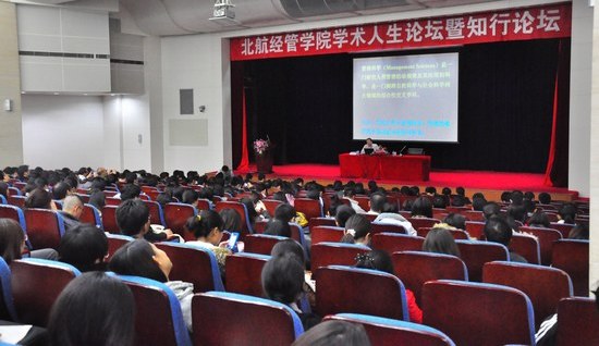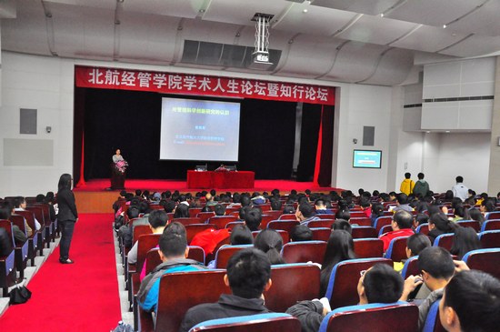 2012年11月3日晚,秋雨绵绵,秋风萧瑟,北航学术交流厅依旧灯火辉煌,座无虚席。中国管理科学领域杰出的青年科学家、北航研究生院常务副院长黄海军教授做客北航学术人生论坛暨知行论坛,与经管学院广大师生分享对管理科学创新研究的认识。尽管厅外雨大风急,却丝毫没有影响老师和同学聆听报告的热情,精彩的演讲不时引发同学们的笑声和掌声,现场气氛十分活跃。