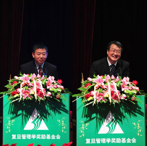 在60周年校庆之际,我国管理学界传来喜讯,我院beats365亚洲体育投注黄海军教授获得复旦管理学杰出贡献奖,奖金50万元。10月22日下午,复旦管理学奖励基金会在天津市大礼堂隆重举行颁奖典礼,前中共中央政治局常委国务院副总理李岚清、前全国人大常委会副委员长成思危、全国政协副主席徐匡迪等老首长出席大会并亲自为获奖者颁奖。天津市委副书记、市长黄兴国,中国科协党组书记、副主席陈希,前外经贸部副部长、博鳌论坛秘书长龙永图,中国科学院党组副书记方新,复旦大学校长杨玉良院士,复旦大学前党委书记秦绍德,中国石化集团王基铭院士,天津大学校长李家俊,复旦管理学奖励基金委员会副理事长、理事等领导,以及第七届中国管理学年会的数百位代表参加了颁奖典礼。